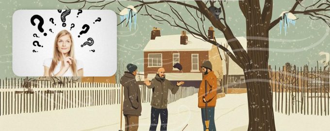 Στην εικόνα βλέπετε τρεις επιστάτες που συγκεντρώθηκαν στην αυλή κάτω από ένα δέντρο το χειμώνα και συζητούσαν. Κανείς από τους συνομιλητές δεν πρόσεξε καν ότι ένας από αυτούς βρισκόταν σε σοβαρό κίνδυνο.
