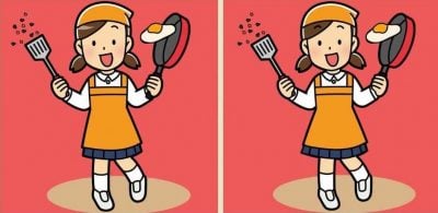 Και τα δύο σχέδια απεικονίζουν ένα κορίτσι που φτιάχνει ομελέτα. Και φαίνεται να έχει πρόβλημα, γιατί το τηγανητό αυγό είναι έτοιμο να πέσει στο πάτωμα από το τηγάνι.