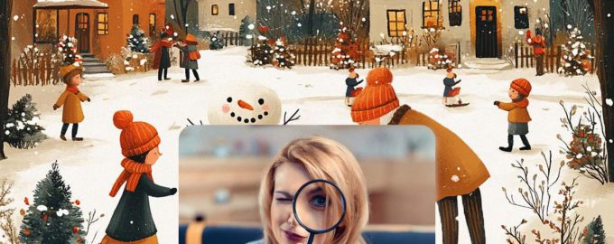 Παρακάτω θα δείτε μια εικόνα μιας χιονισμένης πλατείας όπου περπατούν άνθρωποι. Κάποιος παίζει χιονόμπαλες, κάποιος φτιάχνει χιονάνθρωπο ή απλά θαυμάζει το χειμερινό τοπίο.