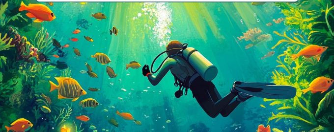 Η εικόνα δείχνει έναν δύτη εν μέσω ενός υποβρύχιου τοπίου. Ο στόχος σας είναι να εξετάσετε προσεκτικά την εικόνα και να βρείτε ένα σοβαρό λάθος σε αυτήν. Μία από τις απεικονιζόμενες λεπτομέρειες είναι αδύνατη.